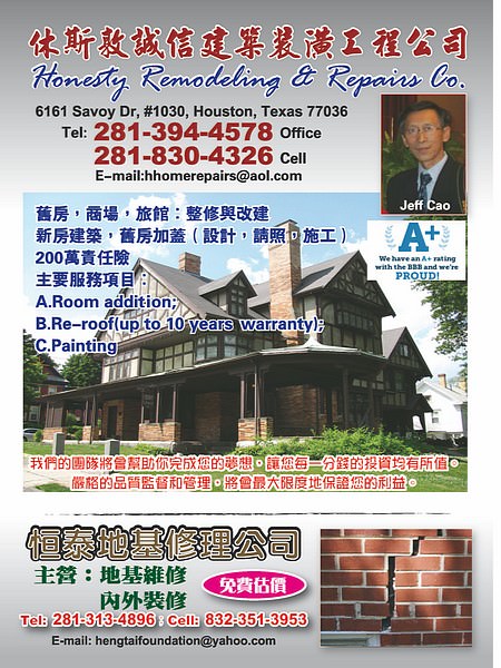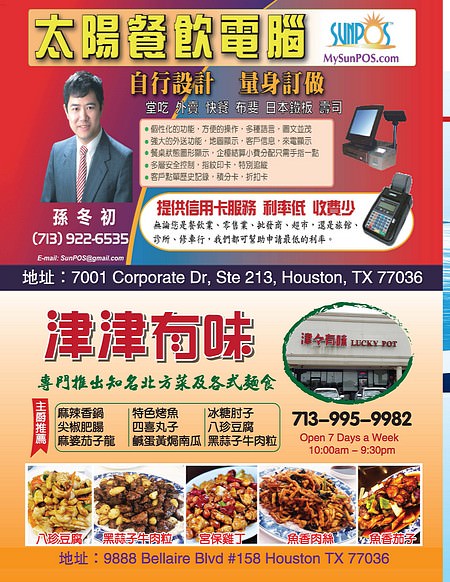 商業廣告 ad@scdaily.com 分類廣告 cla@scdaily.com Phone 281-498-4310 Fax 281-498-2728